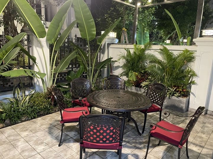 Chất liệu này không chỉ cứng cáp mà còn có khả năng kháng nước, kháng gỉ và hạn chế tối đa các tác động từ môi trường. Bạn có thể đặt bộ bàn ghế nhôm đúc nghệ thuật làm bàn ăn/bàn trà tại khu vực sân vườn/ban công mà không phải lo sợ thời tiết bào mòn.