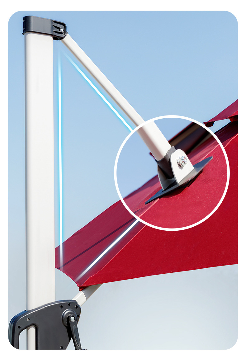 Khung của ô lệch hợp kim nhôm xoay 360 độ được sử đúc bằng hợp kim nhôm định hình chịu được tác ngoại lực lớn mà không bị biến dạng, nan ô được sử dụng bằng hộp mạ kẽm sơn tĩnh điện