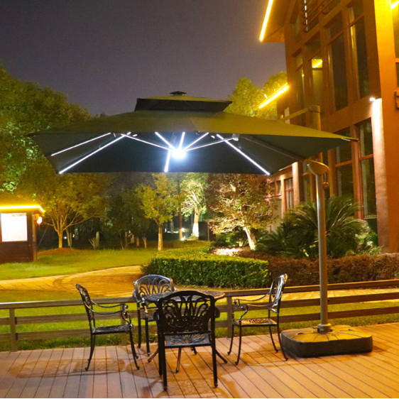 Dù lệch tâm vuông có đèn dùng để trang trí sân vườn bạn có thể xoay và điều chỉnh mọi hướng, nấc xoay 360 độ giúp bạn dễ dàng điều chính theo hướng nắng một cách thoải mãi và mang đến khả năng che nắng hoàn hỏa nhất, bạn có thể điều chỉnh ô nghiêng theo ý muốn mà không cân mất thời gian để dịch chuyển cả chân đế của ô