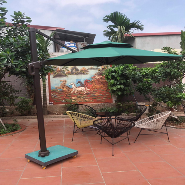 Ô dù lệch tâm tròn 3m hợp kim nhôm được Công Ty TNHH Sakawa Việt Nam phân phối với chất liệu khung ô làm bằng hợp kim nhôm và phần dù che được sử dụng chất liệu vải polyester đây là loại vải rất được phổ biến trên thị trường hiện nay, sợi vải polyester có nhiều ưu thế sơn so với các loại vải sợi truyền thống là không hút ẩm nhưng hất thụ dầu chính nhờ vào những đặc điểm này mà nó rất phù hợp để sử dụng ở những khu nghỉ dưỡng, như resort, khu biệt thự, khu nhà vườn, khu đô thị sinh thái, nhà hàng, khách sạn…