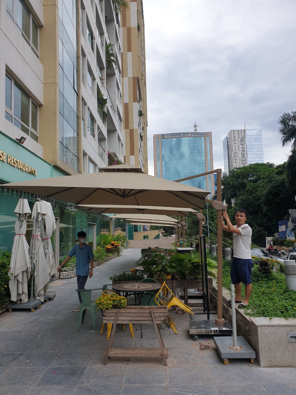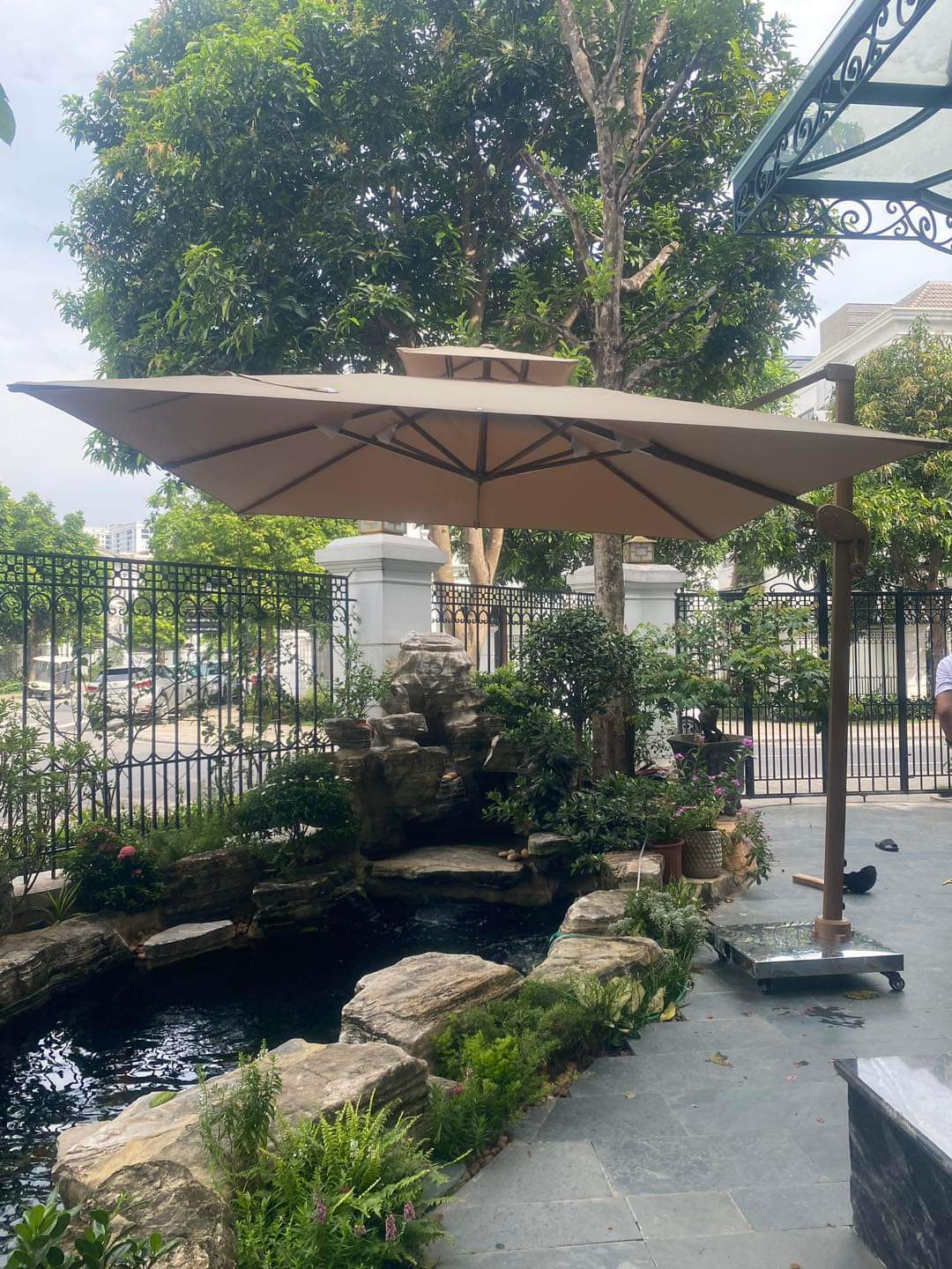Ô lệch tâm vuông 3m xoay 360 sở hữu màu be ( nâu caphe ), đây là màu sắc đem lại vẻ yên ả, thanh bình. Khi ngồi dưới tán ô thưởng thức ly cà phê, khách hàng sẽ có một cảm giác thư giãn, êm dịu từ trong tâm hồn. Hơn nữa ô che cafe có kích thước che phủ lớn 3 x 3m, khả năng chống nắng, mưa và cản gió cực kì tốt.